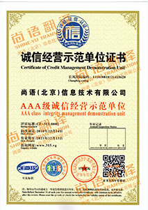 尚語翻譯是AAA級誠信經(jīng)營示范單位
